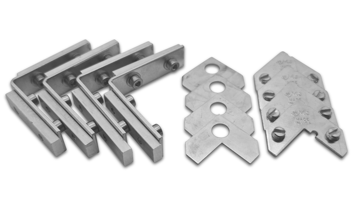 Dieses Set besteht aus 4 Stück Eckverbindern große Nut und 4 Stück Eckverbindern flache Nut