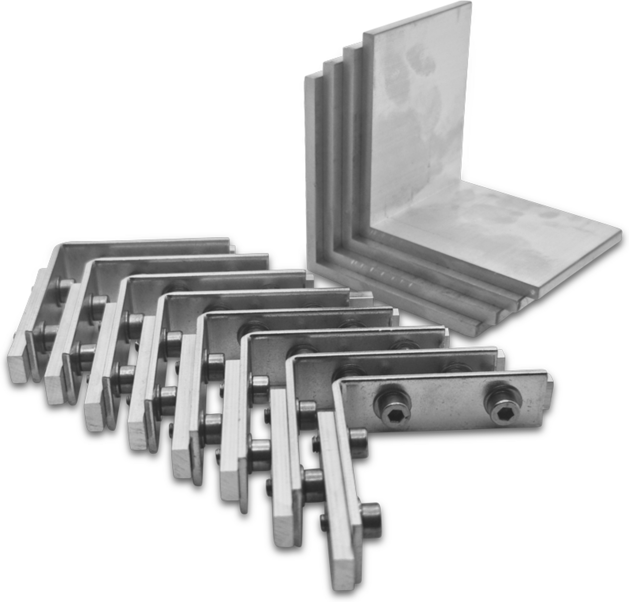 Eckverbinderset für Eco 90bs Rahmen, bestehend aus 8 Stück Eckverbinder kleine Nut und 4 Stück Stabiwinkel für Hohlkammer 36,8mm