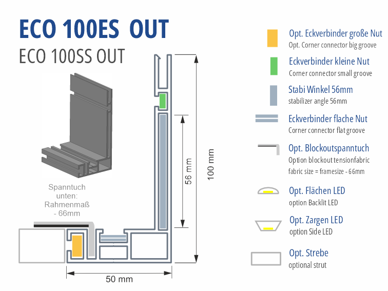 Das Profil kann direkt verschraubt werden, als Rückwand kann nach Profilmontage eine Weiße Plane mit unserer Schlagleiste eingeklopft werden, oder ein weißes Spanntuch mit Gummilippe eingesetzt werden! Verstrebungen können mit Schnellspannschlössern aufgenommen werden.