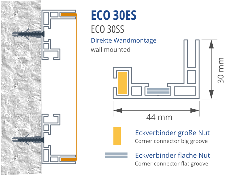 Einseitiges 30mm Profil für eigenstabile Rahmen mit Gummilippentechnik. Kann direkt an die Wand geschraubt werden, mit Verstrebung sind aber auch eigenstabile Rahmen möglich, die gehängt werden können.