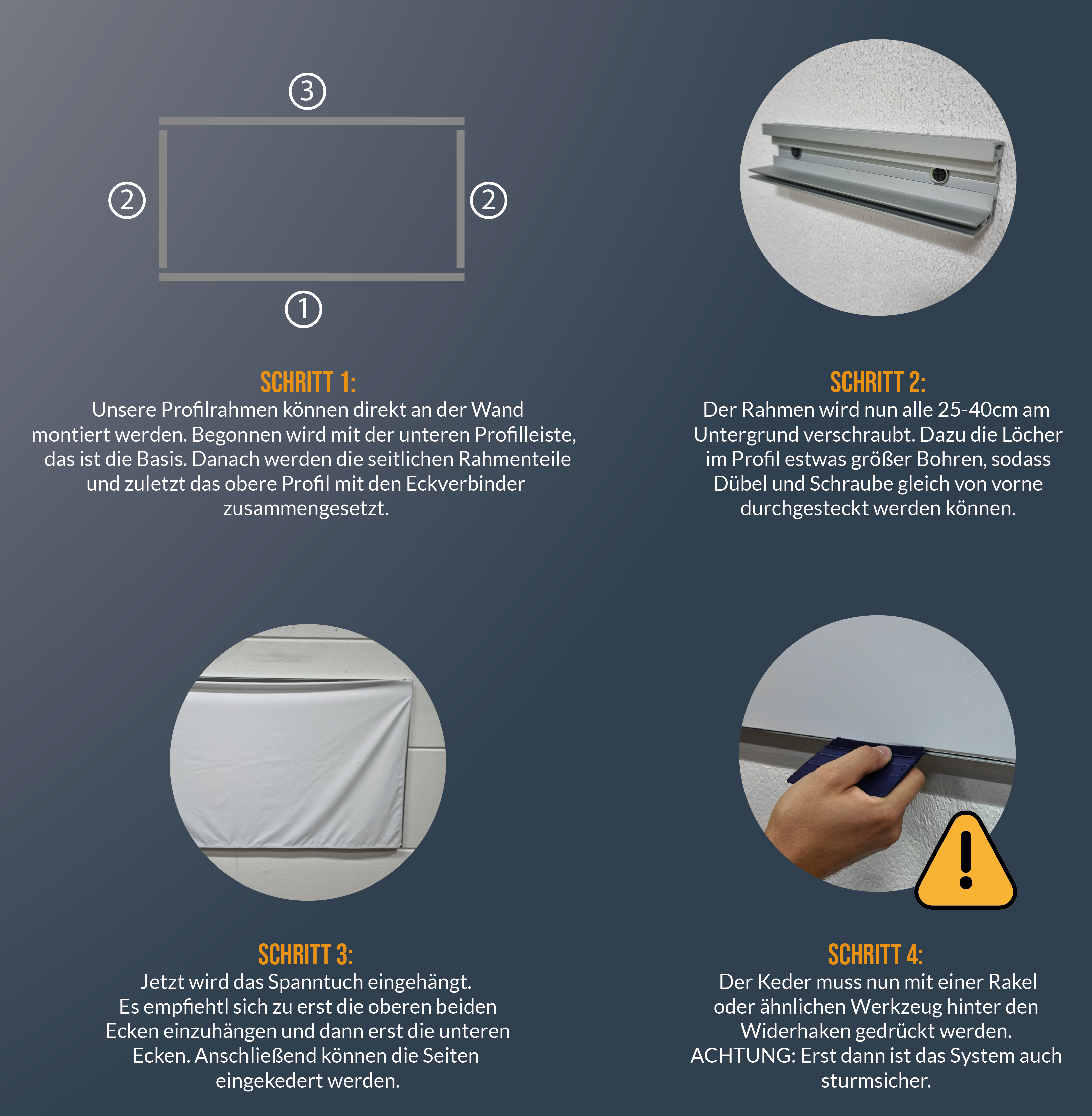 Das Profil für unbeleuchtete Gummilippenspannrahmen im AUSSENBEREICH! Der Widerhaken am innenliegenden Steg sorgt für absolut sicheren Halt des Spanntuches OHNE jegliche zusätzliche Sicherung!