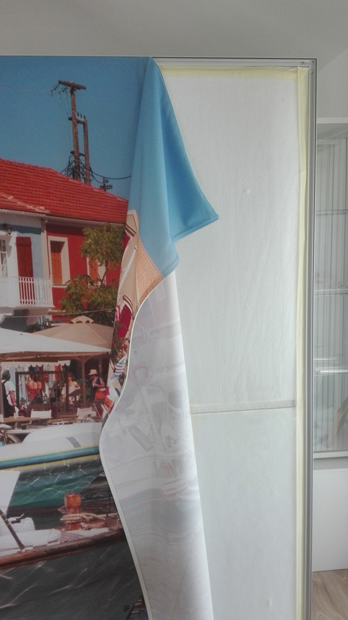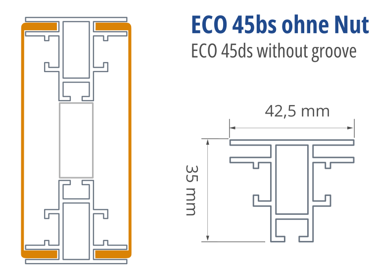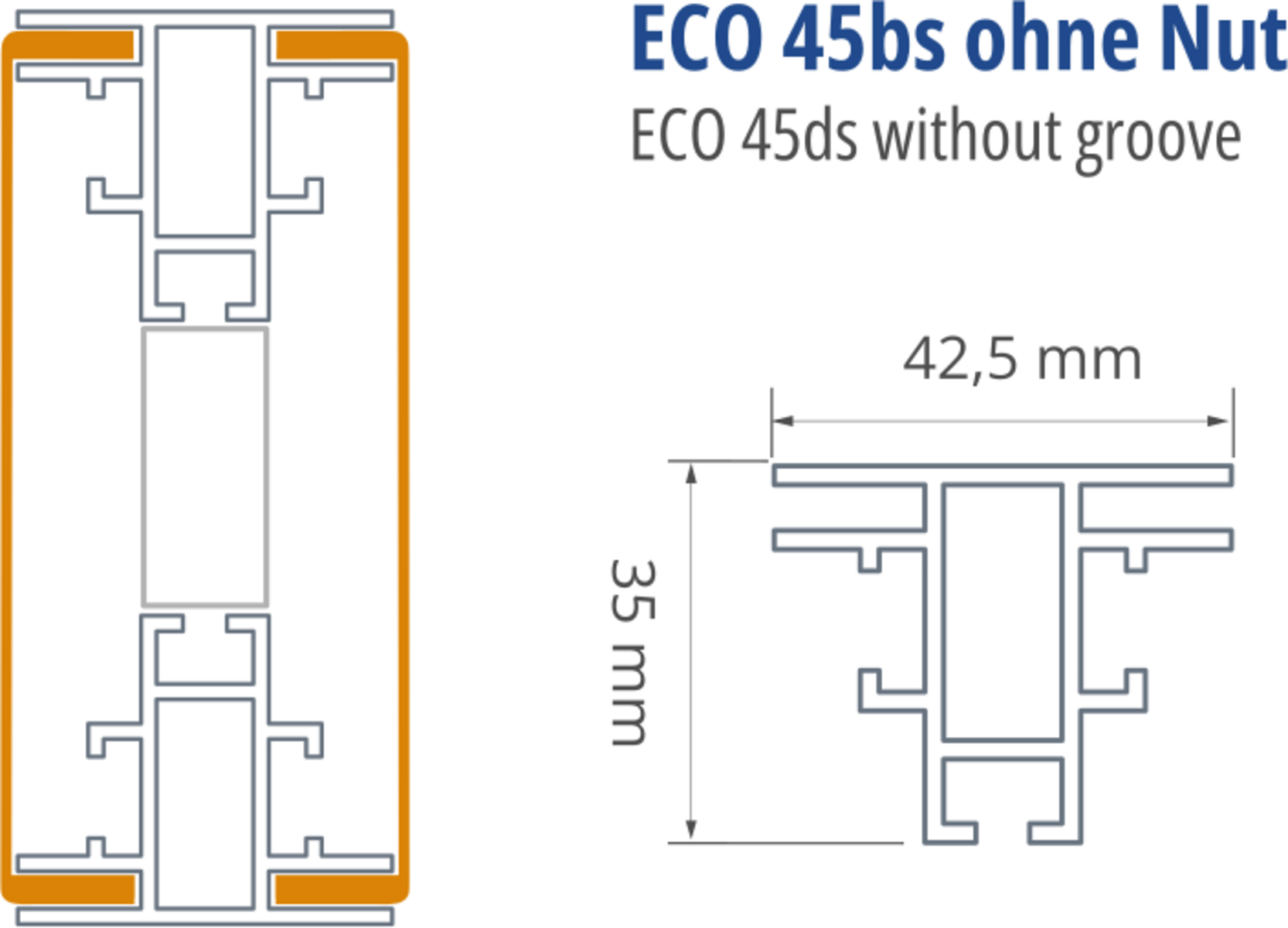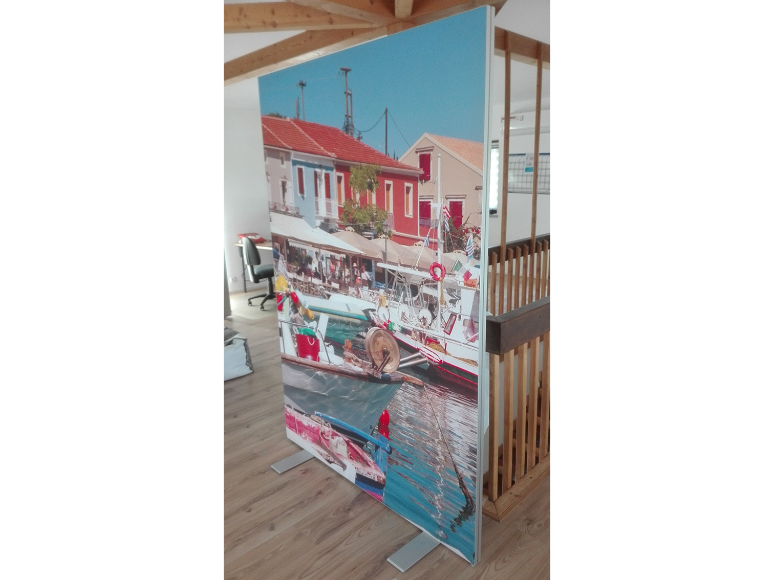 Schlankes, aber stabiles Aluminiumprofil zur Herstellung beidseitiger Anwendungen. In Kombination mit unseren Fußlösungen wird es häufig für Aufsteller oder Raumteiler eingesetzt. Mit unseren Stahlseilabhängungen realisieren Sie elegante Deckenabhänger als Werbeträger oder Leit- bzw. Informationssystem. Kombiniert mit unserem 30-mm-Akustikmaterial lassen sich alle diese Produkte zusätzlich schallhemmend ausführen. Für eine einfachere Montage von Füßen oder Abhängungen kann dieses Profil mit dem Eco 45bs mit Nut kombiniert werden. Zur Frontbeleuchtung können oben unsere LED-Fluter montiert werden.